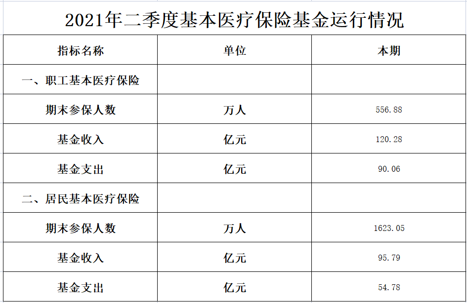 2021年第二季度基本医疗保险基金运行情况