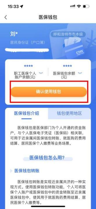 2. 点击确认使用钱包,显示使用地和手机号信息,核实无误,点击立即确认使用,即可开通钱包。