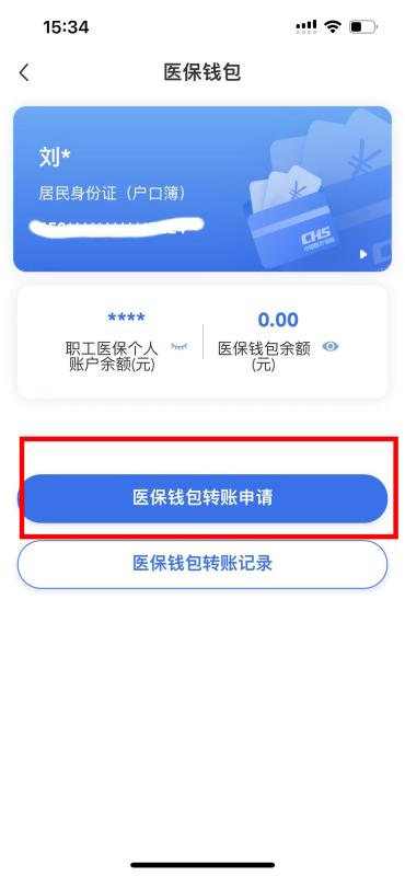 - 在钱包前面界面,点击:医保钱包转账申请,填写被转账人基本信息,填写完成之后,点击提交,等待返回信息。
