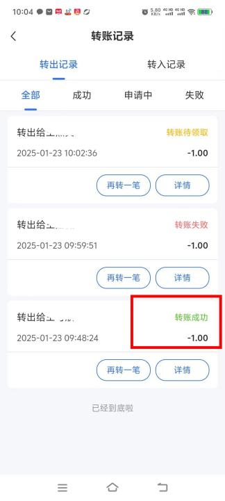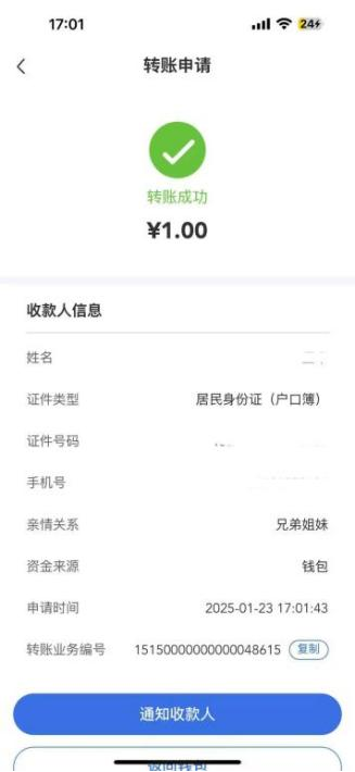 3. 若被转账人未及时接收钱包转账,则发出的金额将在次日6:00退回转账人账户内。